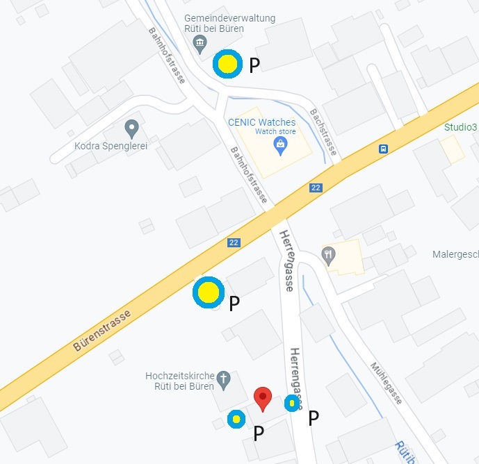 Ansonsten kann man auf dem Parkplatz der Kirche wie auch beim Gemeindehaus parkieren.